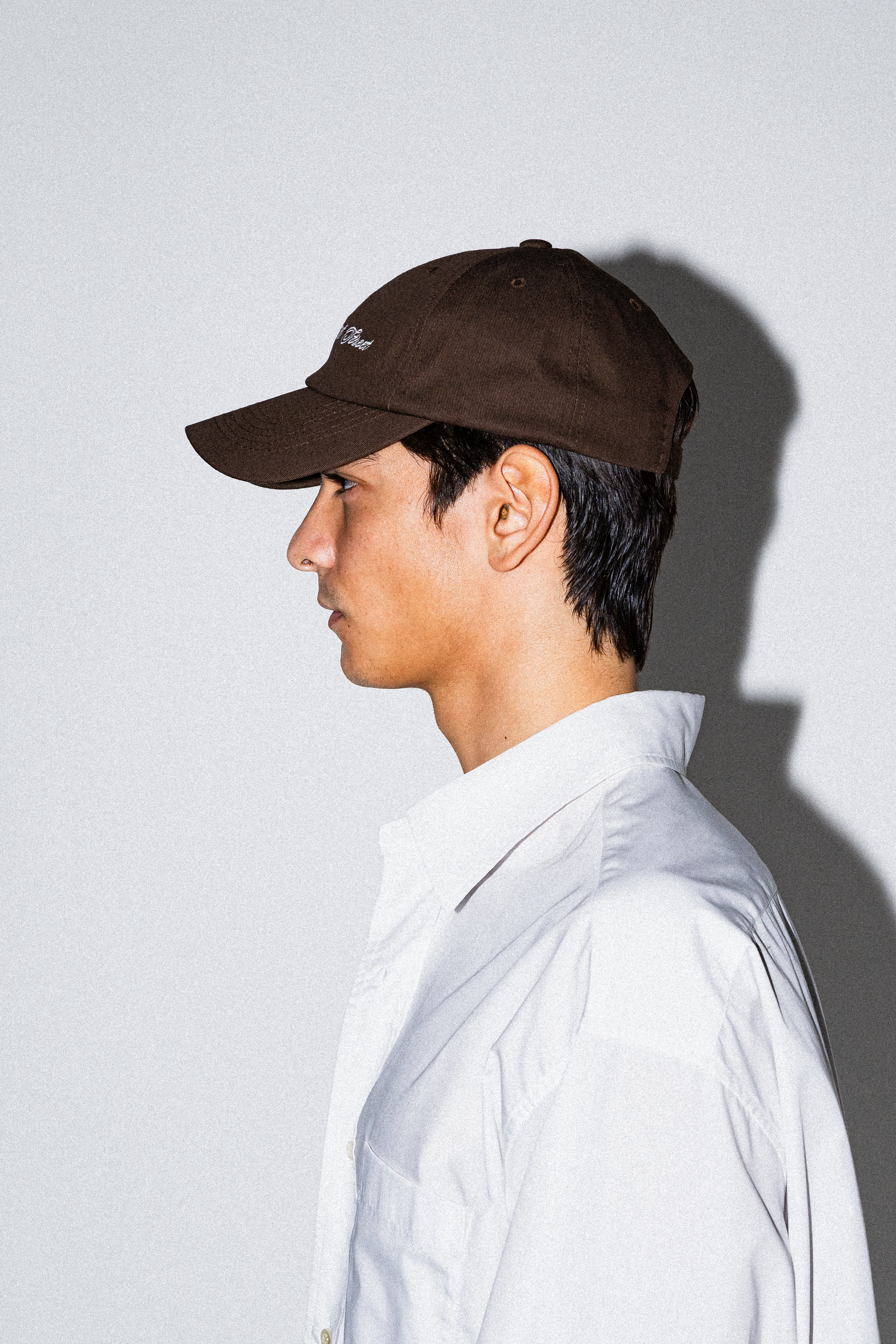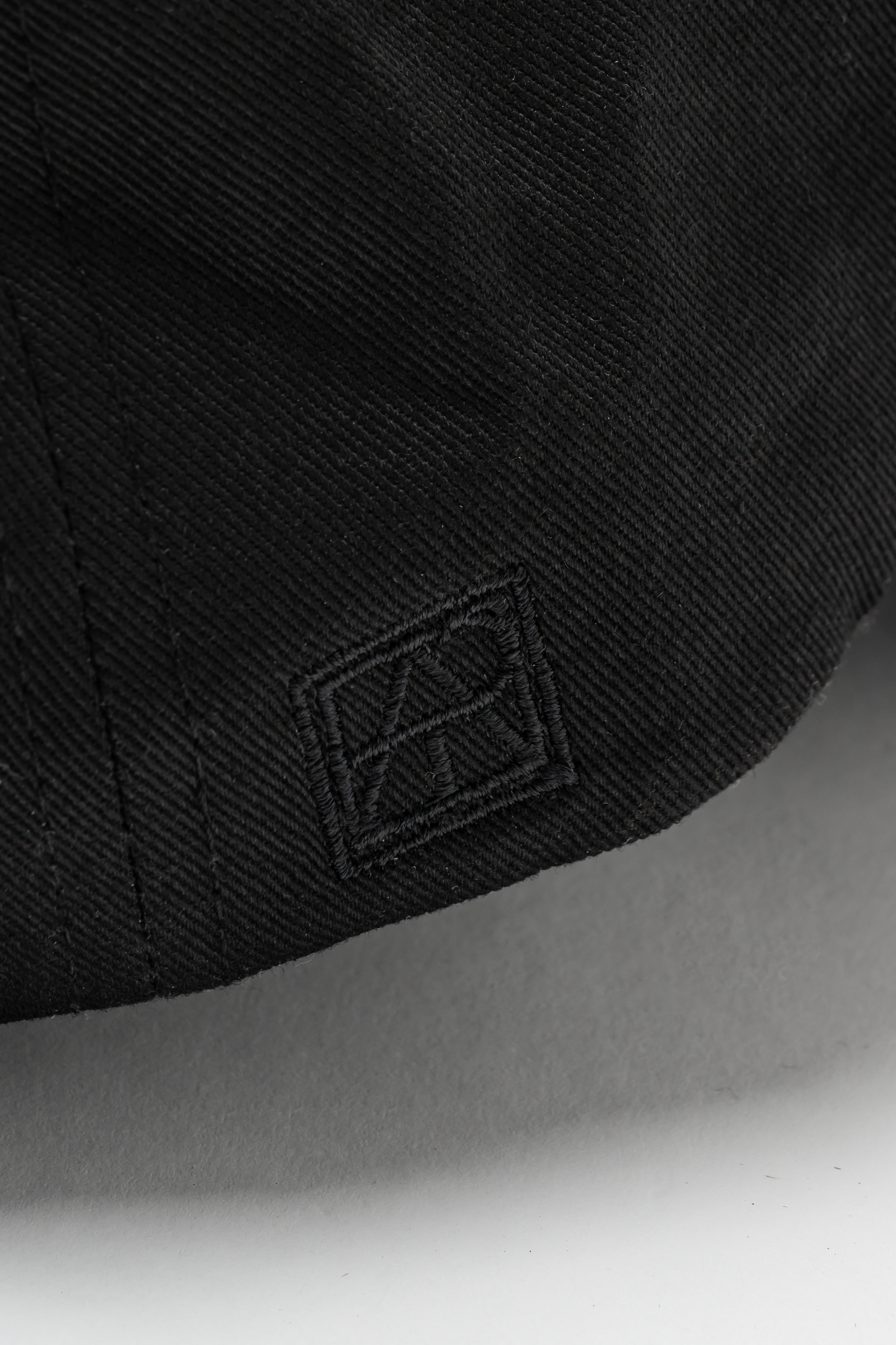 サイドにはオリジナルのシンボル刺繍があしらわれており、後部の共布のストラップとバックル式のアジャスターでサイズ調整が可能です。