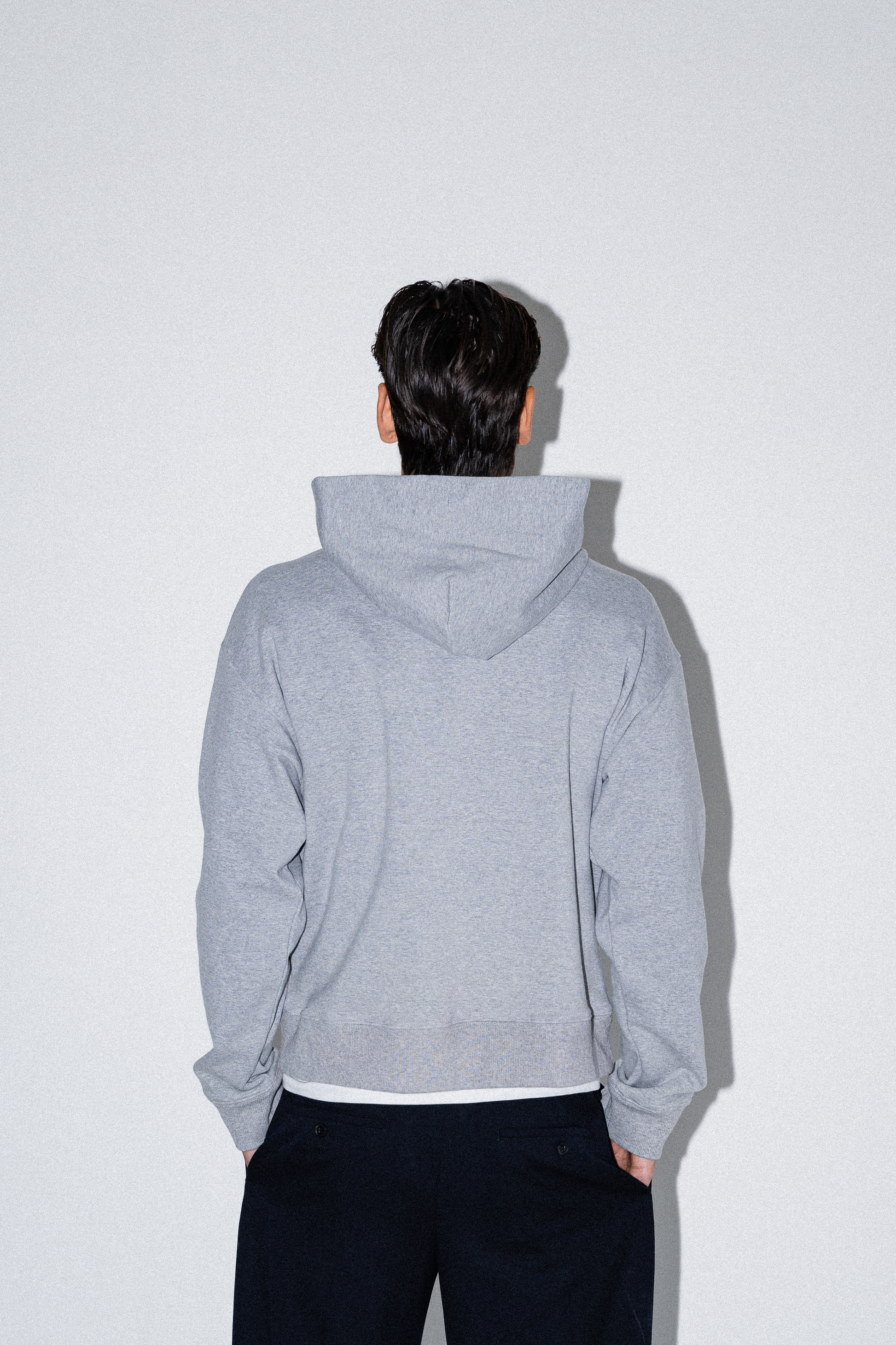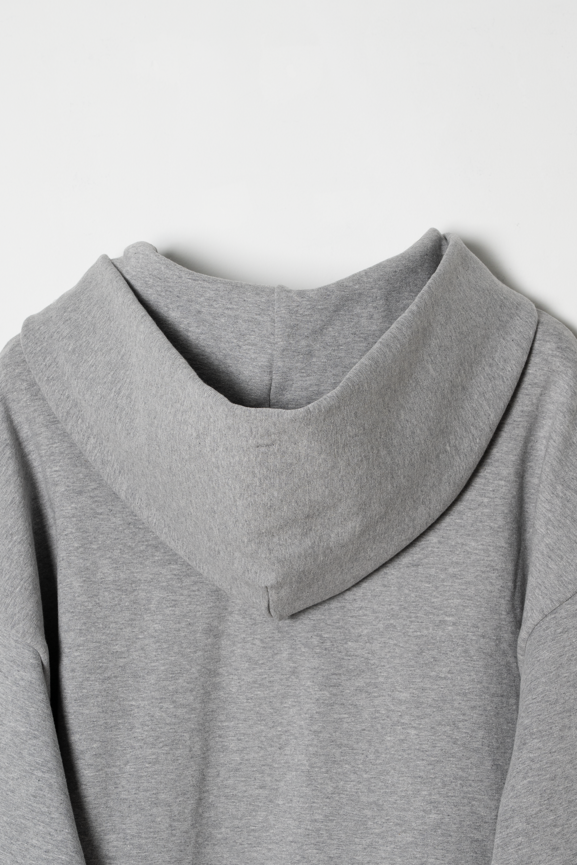 立ち上がりの良い大きめのフードとコンパクトな着丈が特徴のフーディー。