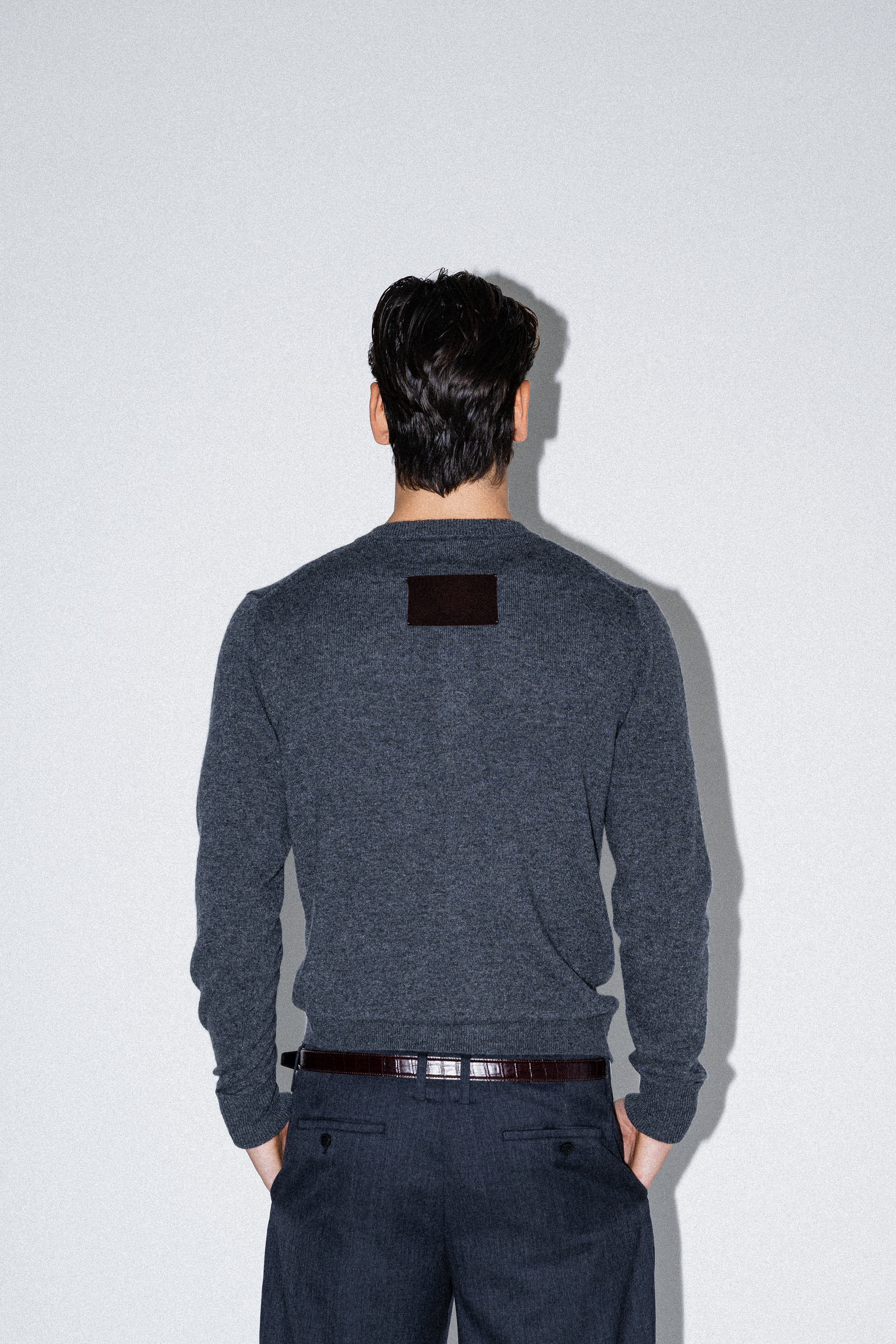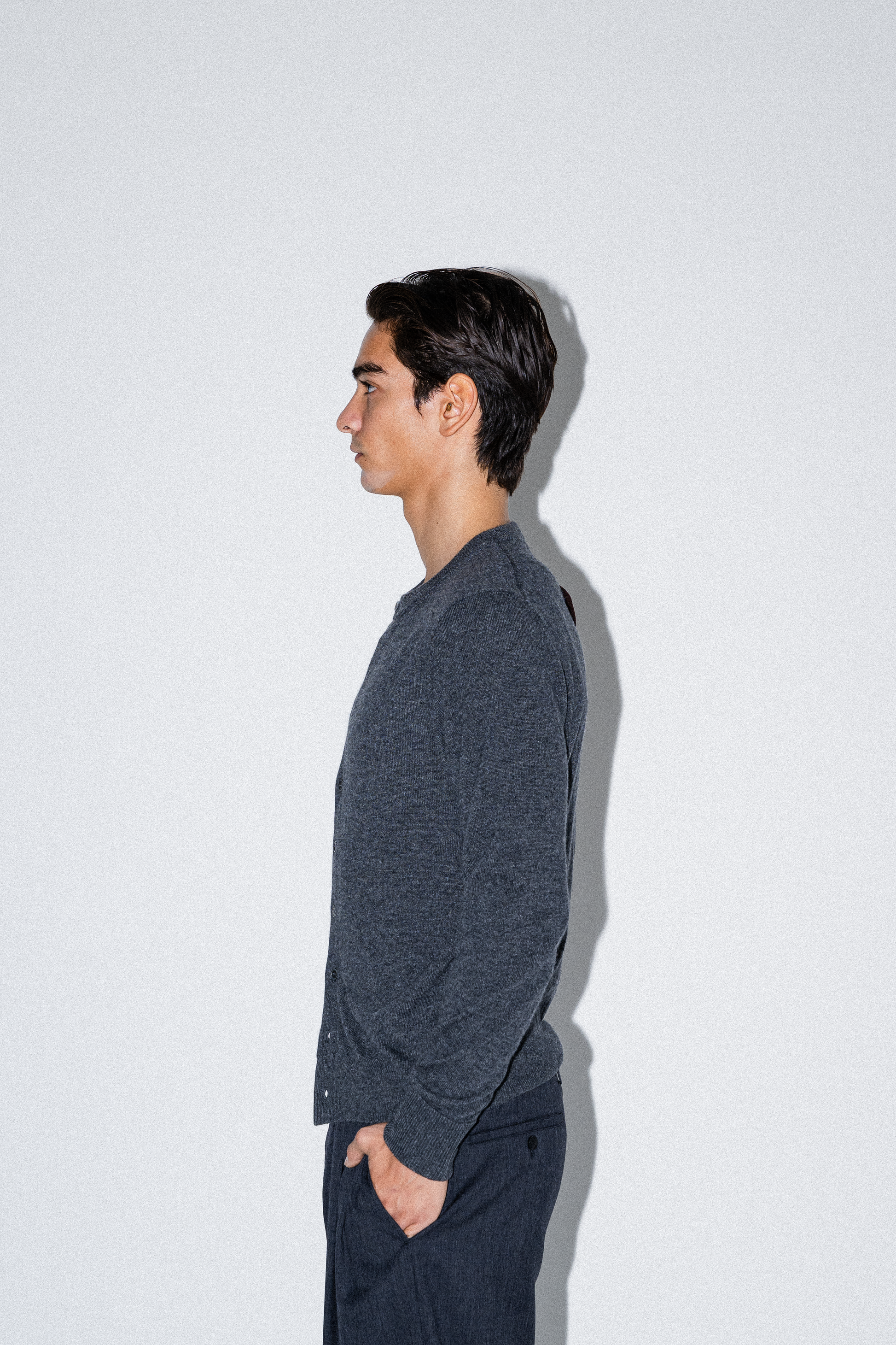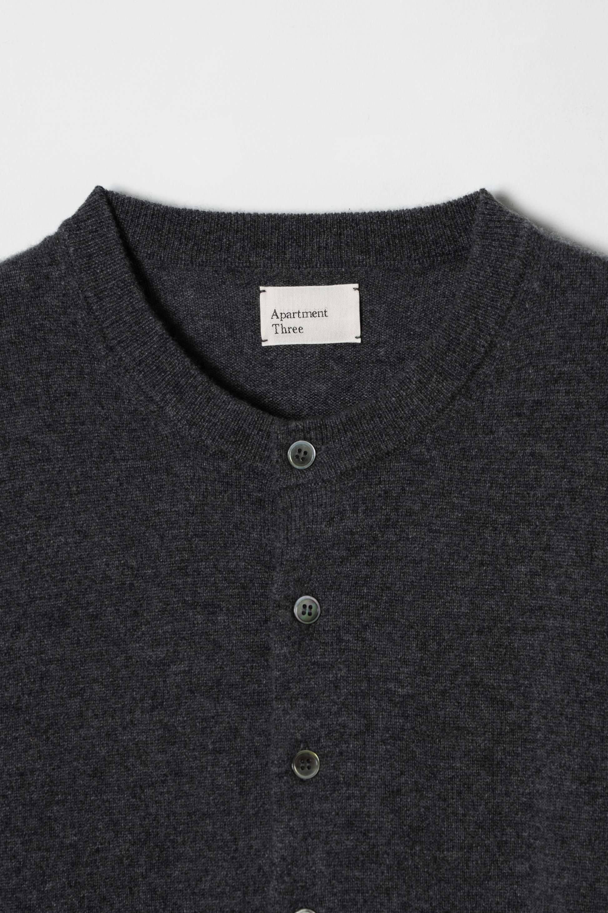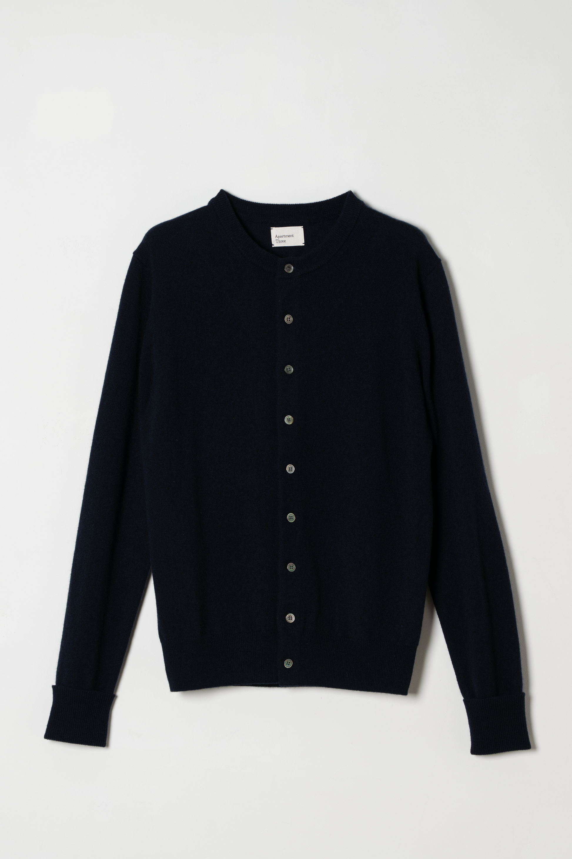 肌着からインスピレーションを受けて生まれたコンパクトなシルエットのクルーネックカーディガン。